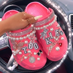 Plate-forme ornée de diamants pour femmes sandales classiques imperméables jardin plage trou chaussures Bling sabot dissolvant breloques pour l'automne